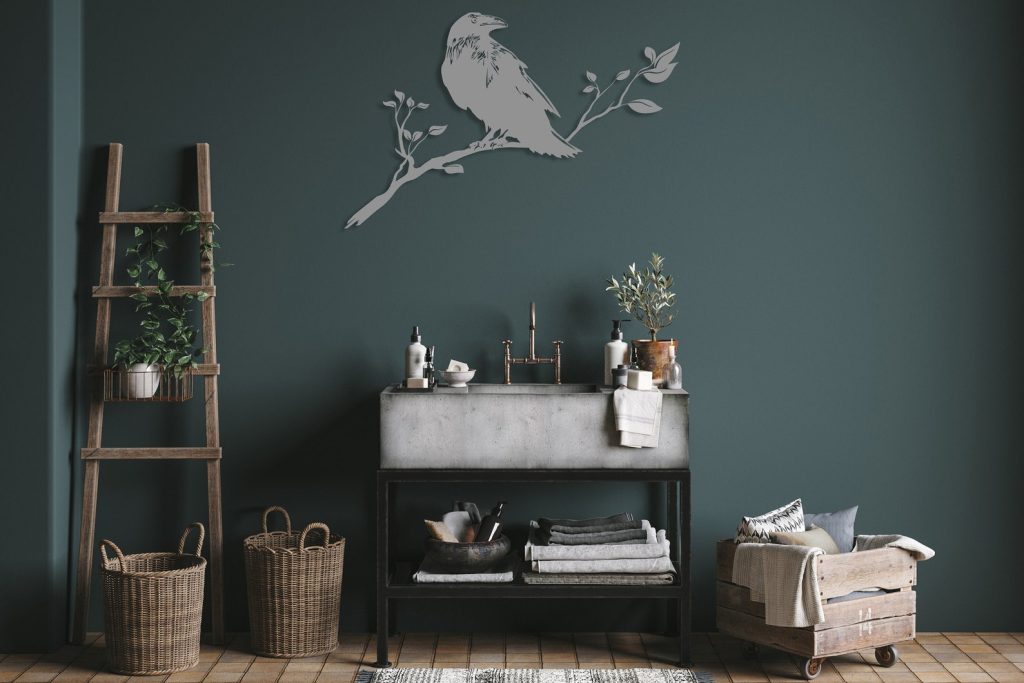 Raven on Branch Wall Decor, Metal Crow Wall Art, Birds Sign Art, Bird Metal Wall Decor, Living Room Sacred Interior Decor, Unique Home Decor