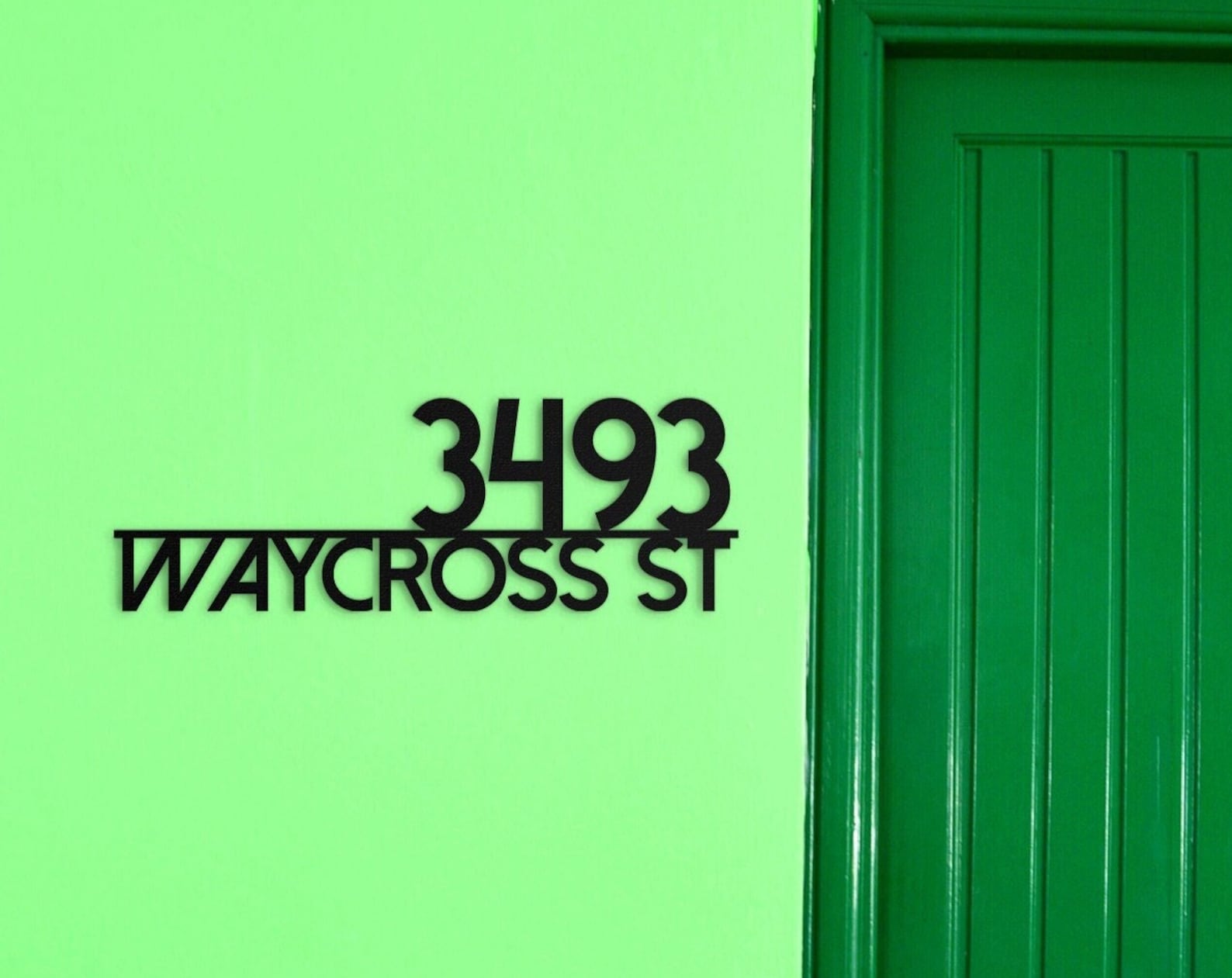 A British made, high quality house plaque, featuring a unique design. Premium quality, durable and suitable for inside or outside this powder coated sign is the perfect way to clearly identify your house name, number, or both. Regular Size, suitable for numbers (250mm x 200mm x 2mm) Large Size, suitable for names and numbers (450mm x 400mm x 2mm) – 2mm Mild Steel – Powder Coated – Comes in black as standard – White vinyl lettering applied as standard – Please specify what you would like writing on your sign when ordering (Name, number or both)