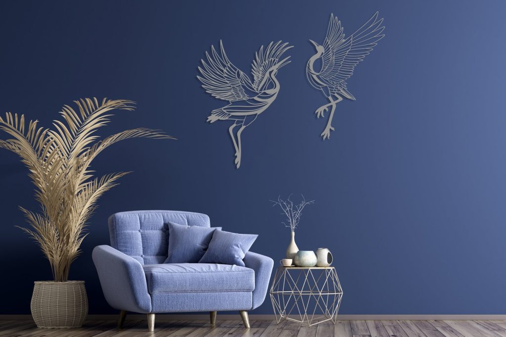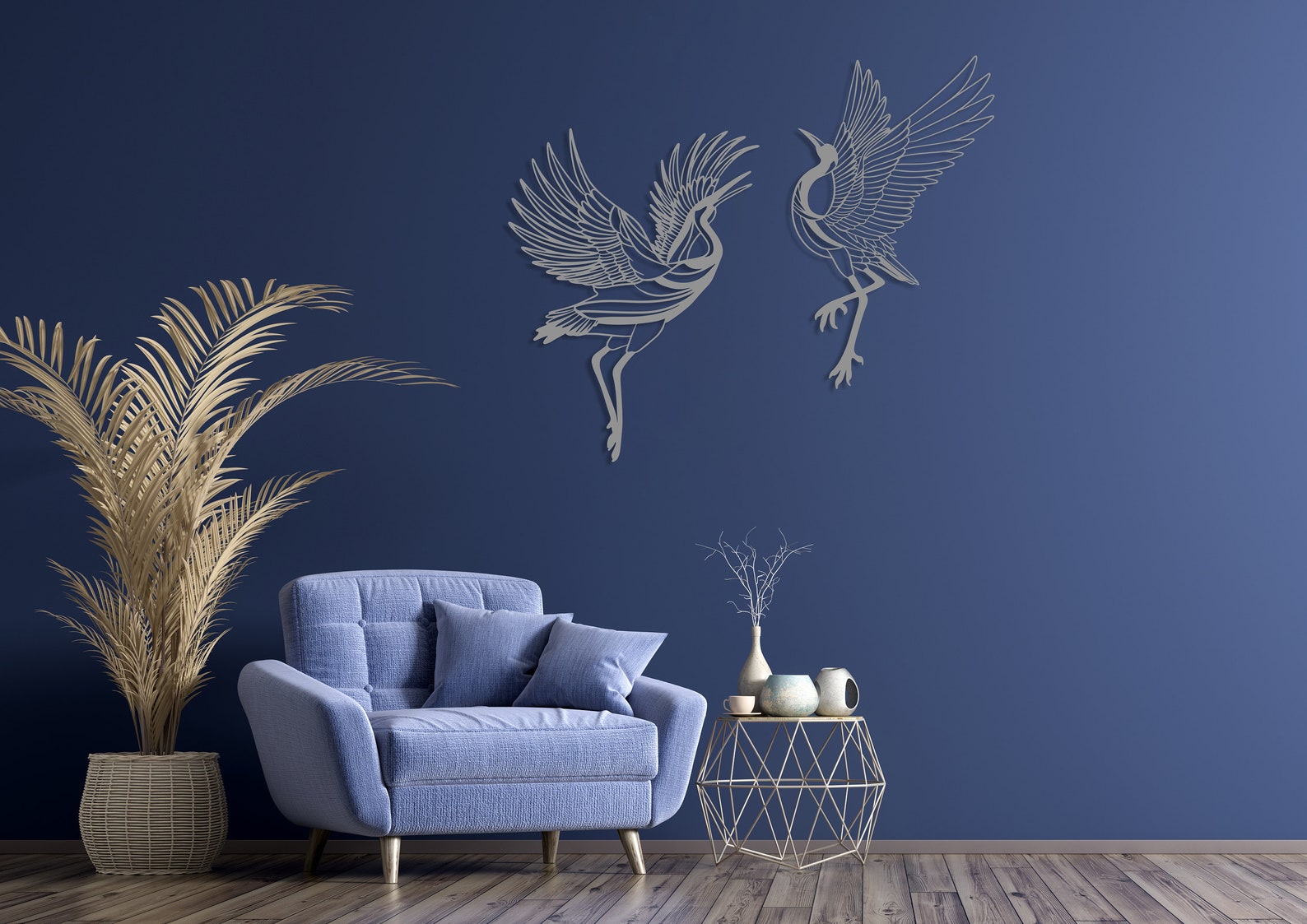 Metal Cranes Wall Art Set of 2, Crane Birds Decor, Unique Living Room Decor, Birds Wall Hanging, Outdoor Wall Decor, Birds Large Wall Art
