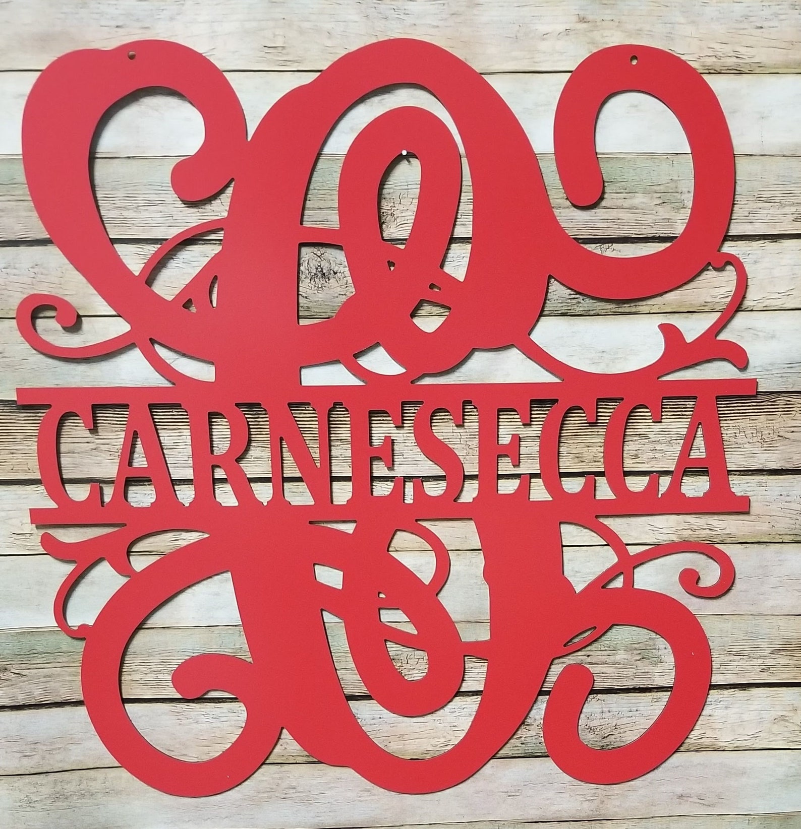 Our Dcor is made from a unique material we call Metal ACM. ACM is an Aluminum Composite Material and is WEATHER PROOF AND LIGHTWEIGHT. IT IS NOT HEAVY STEEL METAL! With our options for hangers/holes, we make it easy to decorate your home (inside or outside) with our Metal ACM Dcor! Our customers have used our dcor on their mantels, patios, gates, fences, barns, siding walls, garages, foyers, etc. This material is used for business signage and perfect for outdoors and direct weather. Choose from a variety of colors. You can also change the color with Rustoleum spray paint. Although from a distance the dcor looks similar to steel signs, PLEASE NOTE: This is NOT heavy steel metal and will not rust. See our other listings for a variety of sizes 12, 14, 18, 24.