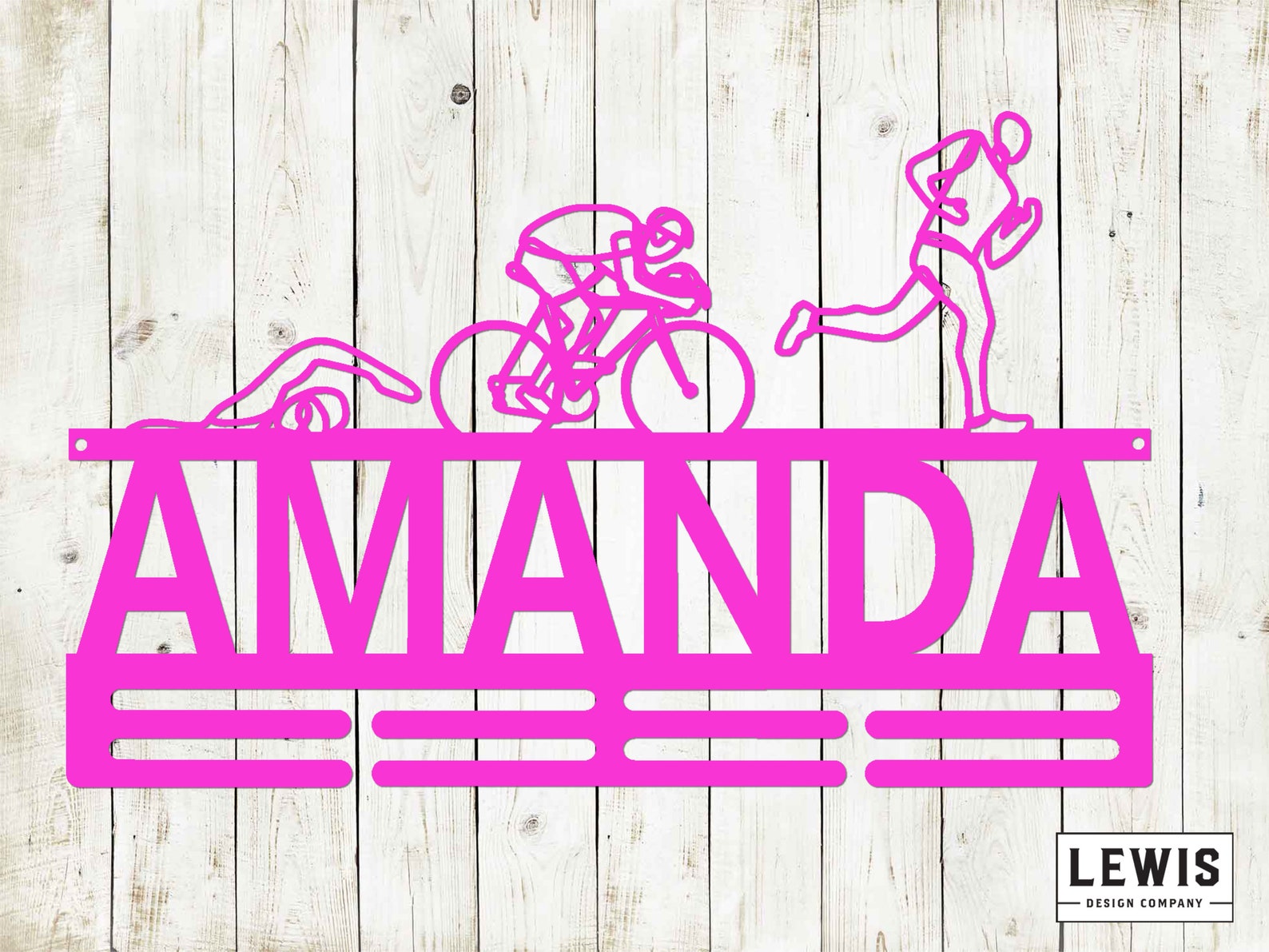 Triathlon Medal Hanger, Custom Monogram Name Sign