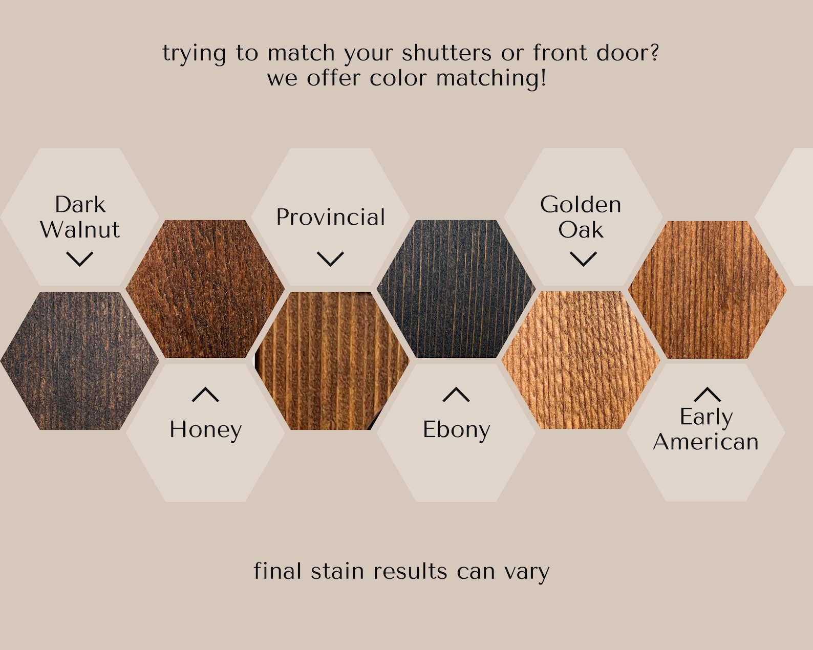 If you prefer a certain stain to be darker or lighter, please let me know and I can adjust accordingly.
