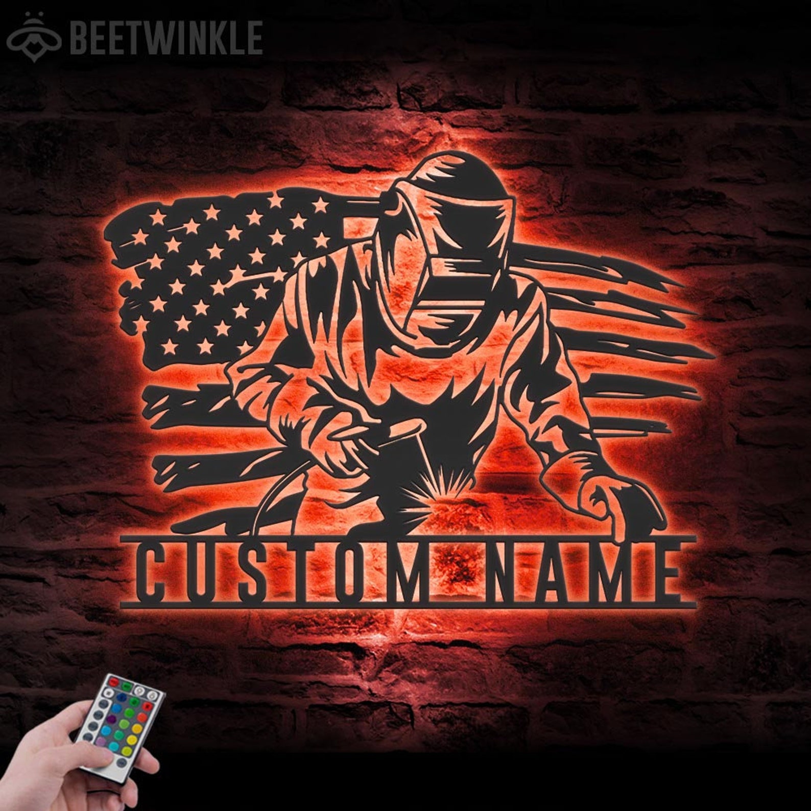 Be the first to review “Welding US Flag Sign, LED Light, Ironworker Gift”