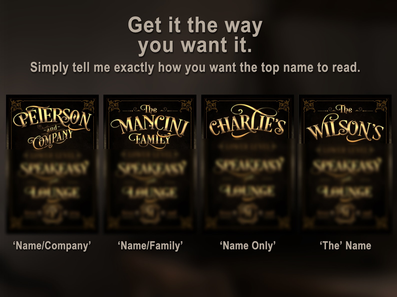 Here9;s a vertical/portrait Whiskey Bar & Lounge sign for that special wall space where a horizontal/landscape sign won9;t fit. This personalized bar sign offers retro, Vegas Gold, look and feel. I will customize this Whiskey Bar & Lounge sign by integrating your name and established date into the vintage art you see.