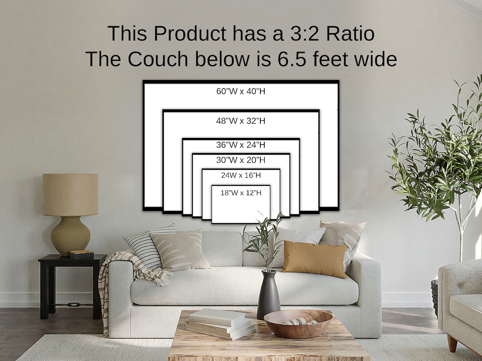 Select a size and material (Canvas or Metal)