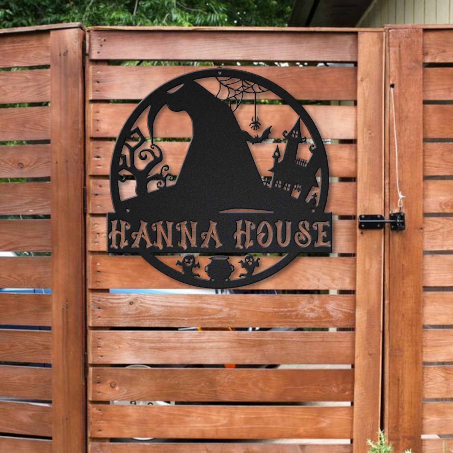 Be the first to review “Witch Hat Halloween Metal Sign – Haunted Welcome Decor”