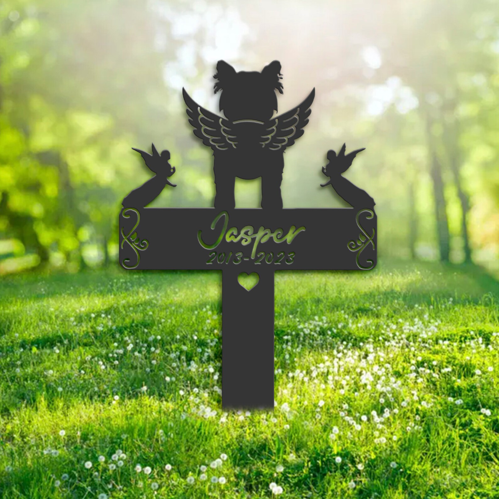 Be the first to review “Yorkie Memorial Metal Stake – Angel Wing Decor”